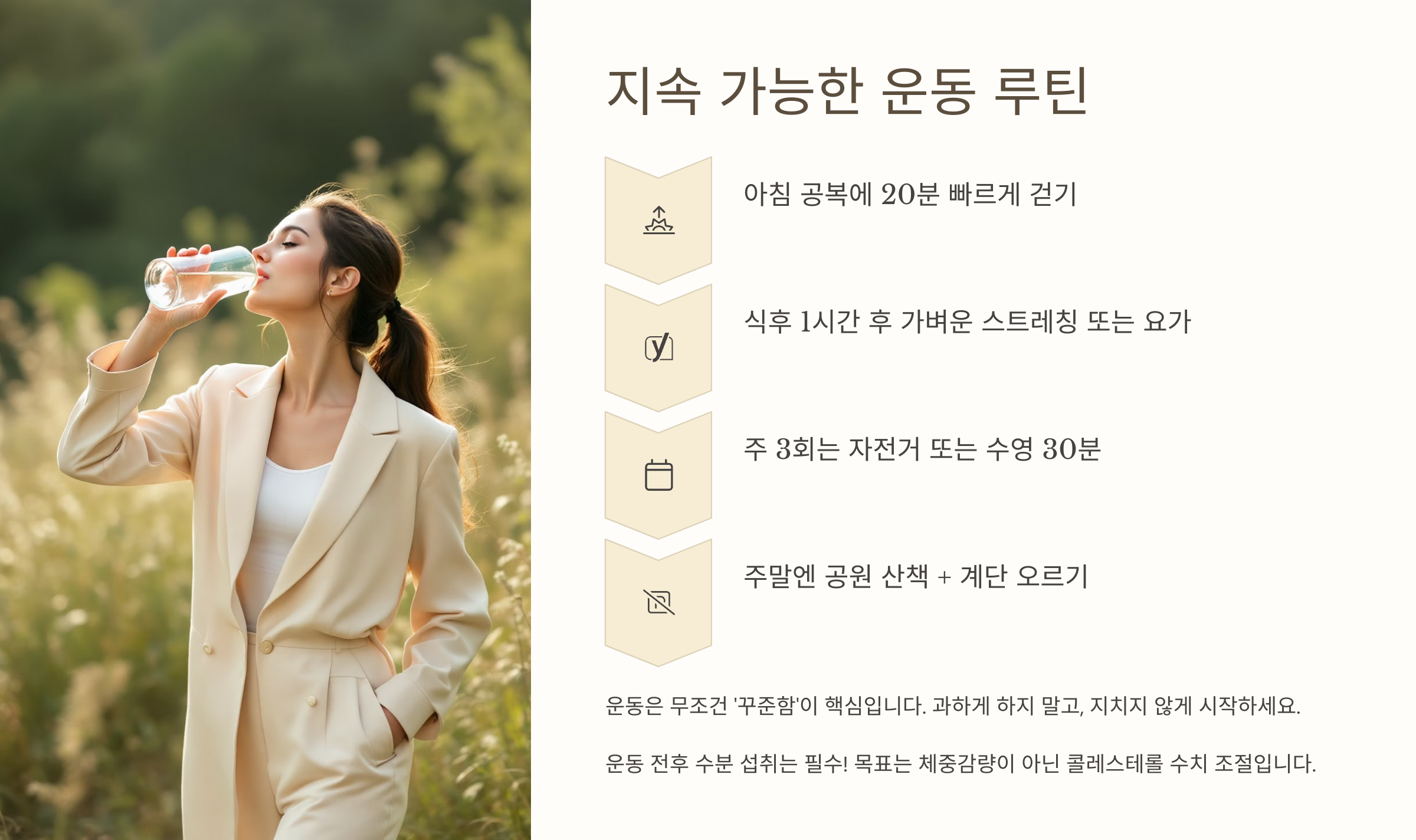 - 주말엔 공원 산책 + 계단 오르기 (무리 없는 강도)