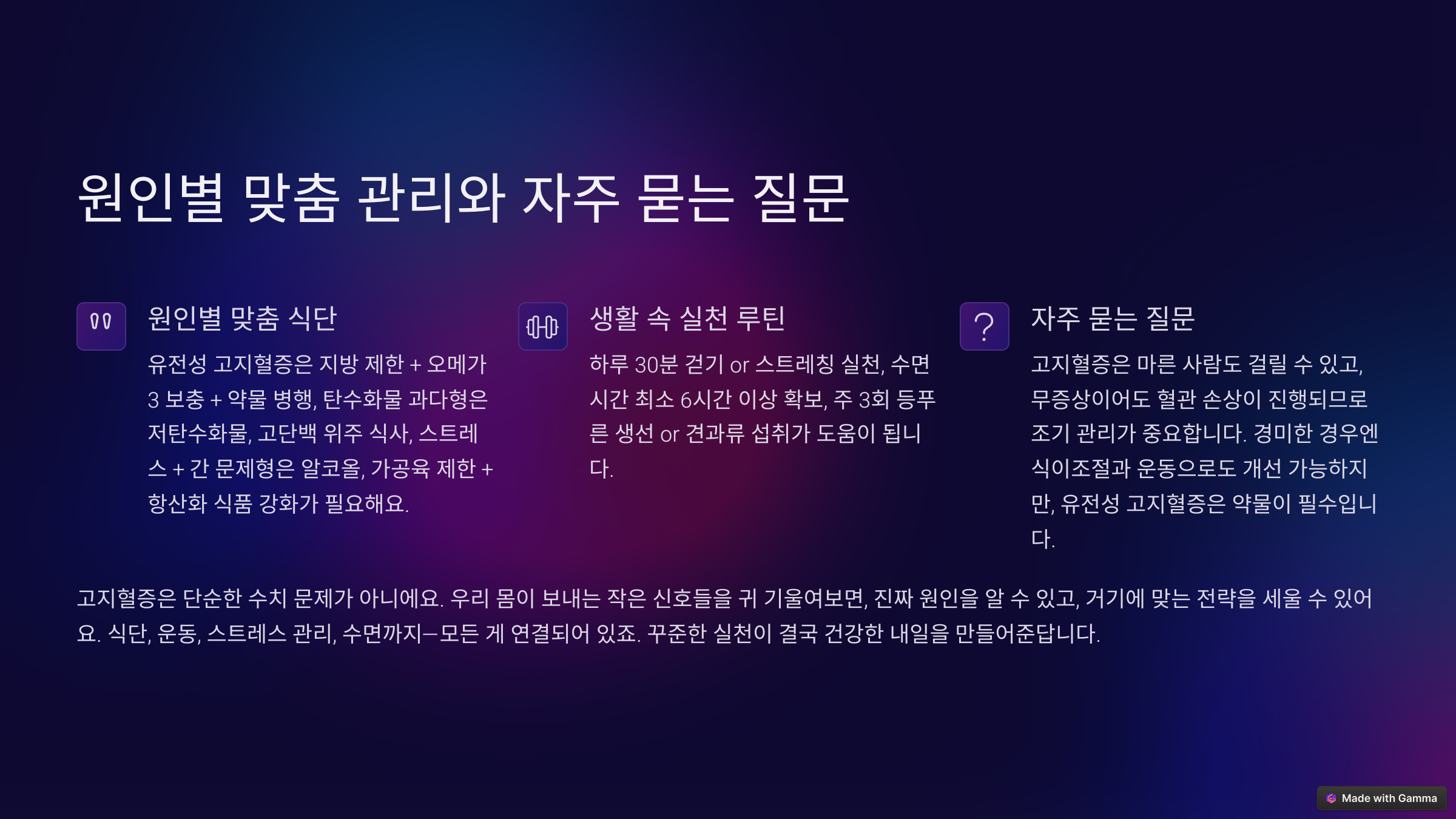 고지혈증은 단순한 수치 문제가 아니에요. 우리 몸이 보내는 작은 신호들을 귀 기울여보면, 진짜 원인을 알 수 있고, 거기에 맞는 전략을 세울 수 있어요. 식단, 운동, 스트레스 관리, 수면까지—모든 게 연결되어 있죠. 오늘 포스팅을 통해 여러분의 몸에 조금 더 귀 기울이고, 실천할 수 있는 한 가지라도 시작해보셨으면 해요. 꾸준한 실천이 결국 건강한 내일을 만들어준답니다. 댓글로 여러분의 경험도 꼭 공유해주세요! 같이 공부하고, 같이 건강해져요. 💪😊