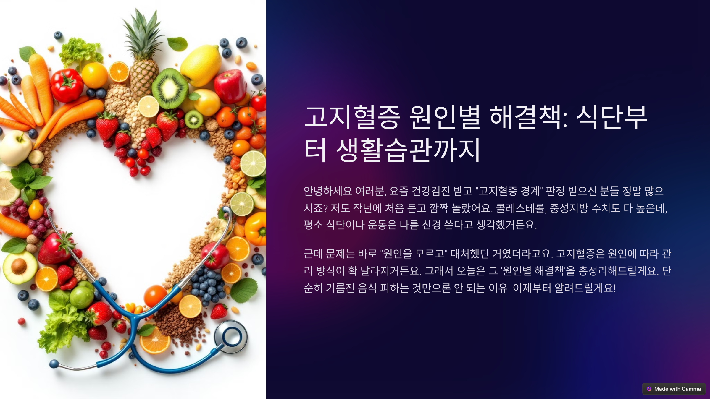 안녕하세요 여러분, 요즘 건강검진 받고 “고지혈증 경계” 판정 받으신 분들 정말 많으시죠? 저도 작년에 처음 듣고 깜짝 놀랐어요. 콜레스테롤, 중성지방 수치도 다 높은데, 평소 식단이나 운동은 나름 신경 쓴다고 생각했거든요. 근데 문제는 바로 "원인을 모르고" 대처했던 거였더라고요. 고지혈증은 원인에 따라 관리 방식이 확 달라지거든요. 그래서 오늘은 그 ‘원인별 해결책’을 총정리해드릴게요. 단순히 기름진 음식 피하는 것만으론 안 되는 이유, 이제부터 알려드릴게요!