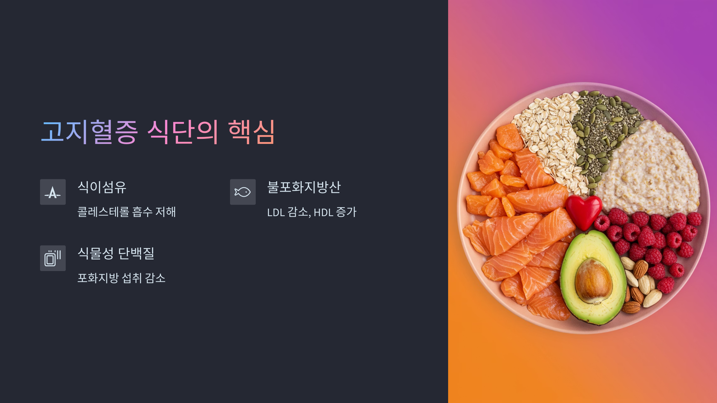 고지혈증, 단순히 약만 먹는다고 해결될까요? 식단이 바뀌면 삶이 바뀝니다.